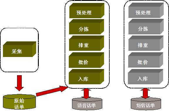 2.系統(tǒng)瓶頸。因為所有的采集、預(yù)處理、分揀、排重、批價進程跑在一個服務(wù)器上,對服務(wù)器資源的要求非常高。尤其是語音話單部分,單臺服務(wù)器的處理能力成了整個計費系統(tǒng)的性能瓶頸,由于文件系統(tǒng)只能同時掛載在一臺服務(wù)器上,所以應(yīng)用也不能橫向擴展,限制了業(yè)務(wù)的發(fā)展。尤其是在話單重批、月末出賬等高壓情況下,應(yīng)用服務(wù)器都是遠超負(fù)荷在跑,嚴(yán)重影響重批和出賬的速度。