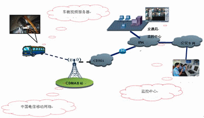 通過(guò)電信CDMA無(wú)線網(wǎng)絡(luò),采集移動(dòng)車輛視頻信息,傳送給監(jiān)控中心實(shí)現(xiàn)遠(yuǎn)程視頻瀏覽、遠(yuǎn)程控制功能,同時(shí)車載終端連接LCD觸摸屏并安裝GPS模塊后實(shí)現(xiàn)衛(wèi)星定位和語(yǔ)音自導(dǎo)航功能。系統(tǒng)發(fā)送監(jiān)控及定位信息給調(diào)度監(jiān)控中心,監(jiān)控中心實(shí)現(xiàn)大屏幕視頻圖像、電子地圖顯示,能及時(shí)、準(zhǔn)確地對(duì)車輛進(jìn)行調(diào)度、監(jiān)控和管理。監(jiān)控中心也可以向車輛發(fā)送調(diào)度、路況、新聞等各種信息,提供更好的服務(wù)。