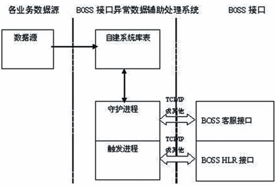 值得一提的是,作為BOSS與外圍系統(tǒng)的承接點,接口的功能最終可歸結(jié)為對BOSS與外圍系統(tǒng)數(shù)據(jù)庫的操作。其中,主動接口的實現(xiàn)邏輯對BOSS2.0接口監(jiān)控措施的實現(xiàn)至關(guān)重要。