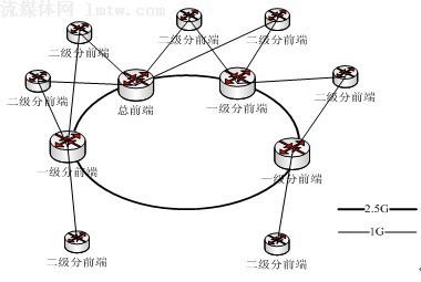 某廣電現(xiàn)有網(wǎng)絡(luò)環(huán)境如下圖所示,總前端及其他一級分前端處于骨干光纖環(huán)網(wǎng)上,另有若干個(gè)二級分前端分別通過光纖雙上聯(lián)至骨干環(huán)網(wǎng)上的總前端或一級分前端中的兩個(gè)物理節(jié)點(diǎn)。所有物理節(jié)點(diǎn)均帶有一定數(shù)量的終端用戶。