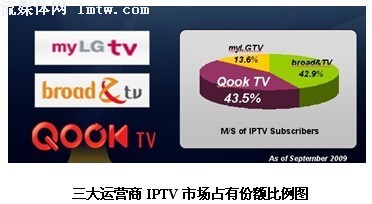 從今年一月份韓國(guó)IPTV正式開(kāi)通至今,經(jīng)過(guò)九個(gè)月的發(fā)展,IPTV用戶人數(shù)已經(jīng)突破100萬(wàn),如果包括視頻點(diǎn)播的所有網(wǎng)絡(luò)電視用戶,合計(jì)用戶數(shù)量已為201萬(wàn)。據(jù)預(yù)測(cè),年底之前,韓國(guó)IPTV用戶將達(dá)到150萬(wàn)戶,并有望在明年突破200萬(wàn)。本文將以KT為例為業(yè)內(nèi)介紹IPTV在韓國(guó)的發(fā)展具體態(tài)勢(shì)。