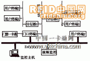 系統(tǒng)采用了兩套獨(dú)立的網(wǎng)絡(luò)系統(tǒng),第一套是基于485總線半雙工網(wǎng)絡(luò)系統(tǒng),第二套是基于以太網(wǎng)的局域網(wǎng);485總線半雙工網(wǎng)絡(luò)系統(tǒng)用以連接門口終端、分層器和用戶終端,這主要是從成本上考慮。由于這三部分交換的信息比較少,數(shù)據(jù)交換的速度要求也不是很高而且實(shí)現(xiàn)比較簡(jiǎn)單,故采用了這種網(wǎng)絡(luò)系統(tǒng)。