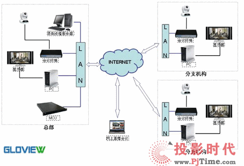 多點會議系統(tǒng)可以滿足不同規(guī)模的遠程會議要求,從兩方會議到上百方的會議都可以達到理想的會議效果,系統(tǒng)同時可以將會議內容錄制下來通過GLOVIEW會議點播系統(tǒng)進行點播,在沒有安裝視頻會議系統(tǒng)的機構可以安裝軟件觀看會議直播,可以支持數(shù)百至上千用戶接入觀看會議,具體組網(wǎng)如下:組網(wǎng)圖及組網(wǎng)說明: