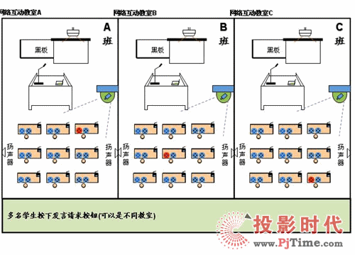 1)多名學生按下發(fā)言請求按鈕(可以是不同教室)