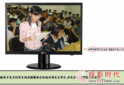 授課教室內如果教師在講課,畫面自動切換到教師,如果教師在使用電腦則自動切換到電腦,如果教師讓某學生發(fā)言,則切換到學生畫面。