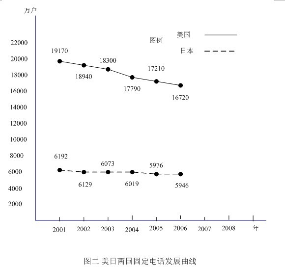 〔3〕大約有2%的美國(guó)家庭沒(méi)有電話。IBB咨詢公司資深分析師表示,「美國(guó)擁有大量愛(ài)講電話的人,可以隨處打電話正是美國(guó)人熱衷的事情! 大型傳統(tǒng)電話公司如AT&T、威瑞森(Verizon),受到美國(guó)人的這一偏好的影響,移動(dòng)通信業(yè)務(wù)現(xiàn)都已經(jīng)超過(guò)了他們?cè)镜暮诵臉I(yè)務(wù)(固定電話)。據(jù)桑福.伯恩斯坦公司的調(diào)查顯示,紐約地區(qū)固定電話的數(shù)量,從2000年以來(lái)已經(jīng)下降了55%,新澤西的情況也差不多,下降了50%。德州下降了20%,加州下降了21%。在年輕用戶中這個(gè)趨勢(shì)更為明顯:34.5%的25到29歲年齡段者,家中只有移動(dòng)電話,30到44歲年齡段者,這個(gè)比例下降至15.5%,65歲以上者,只有2.2%。雖然移動(dòng)電話對(duì)固定電話的取代作用,日美兩國(guó)基本相似,但在日本通信公司卻是IP電話和VoIP電話的主要提供者,因此日本固定電話歷年下降曲線就比較平坦,不像美國(guó)那樣厲害,請(qǐng)見(jiàn)圖二。