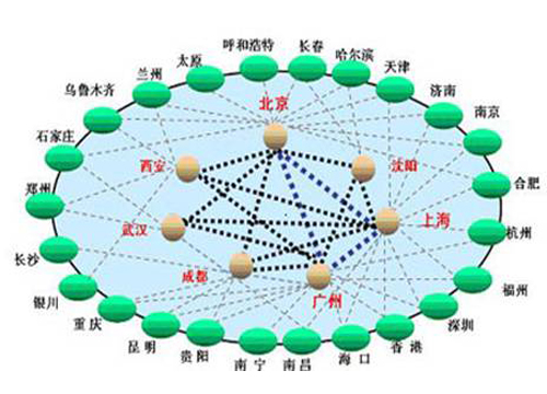 網(wǎng)絡(luò)扁平化概念就適時(shí)提出來(lái)了,F(xiàn)在,網(wǎng)絡(luò)扁平化已經(jīng)是運(yùn)營(yíng)商網(wǎng)絡(luò)建設(shè)的主要指導(dǎo)思想了。特別是中國(guó)聯(lián)通,由于歷史原因造成的骨干網(wǎng)節(jié)點(diǎn)并不夠多導(dǎo)致其南北方網(wǎng)絡(luò)品質(zhì)存在一定差異。而扁平化后能很好的解決此問(wèn)題。下圖為網(wǎng)絡(luò)扁平化示意圖。