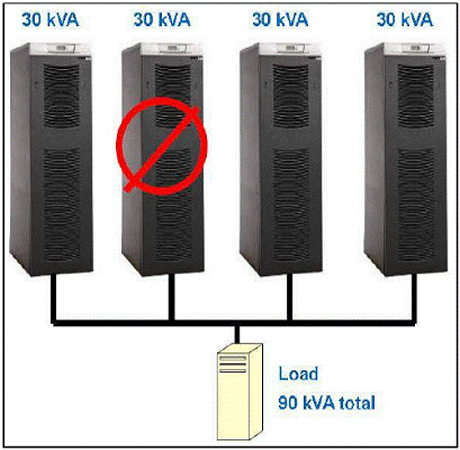 UPS供電模塊的規(guī)模小到3kVA,大到1,000kVA以上。一般來(lái)說(shuō),企業(yè)應(yīng)該部署比成品模塊預(yù)計(jì)滿容量小4~6倍的UPS模塊。