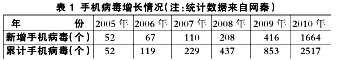 移動(dòng)智能終端與移動(dòng)應(yīng)用商店在向用戶提供豐富多彩的應(yīng)用軟件和數(shù)字內(nèi)容的同時(shí),智能終端病毒、應(yīng)用軟件吸費(fèi)、非法信息傳播等安全問題不斷暴露。移動(dòng)智能終端已經(jīng)成了病毒發(fā)威的新戰(zhàn)場,手機(jī)僵尸、給你米等手機(jī)病毒破壞終端功能,惡意吸取資費(fèi),竊取用戶隱私,極大地?fù)p害了用戶利益。據(jù)網(wǎng)秦統(tǒng)計(jì),2010年新增的手機(jī)病毒數(shù)是2004~2009年手機(jī)病毒總數(shù)的近兩倍(見表1),預(yù)計(jì)共感染手機(jī)800萬部以上。據(jù)報(bào)道,我國至少有10家Android平臺的吸費(fèi)SP或渠道公司,抽樣顯示近40%的Android常見應(yīng)用程序被植入惡意吸費(fèi)代碼。在信息內(nèi)容安全方面,包含色情暴力、反動(dòng)言論等信息的應(yīng)用軟件曾出現(xiàn)在App Store中,危害青少年健康成長,影響社會(huì)穩(wěn)定團(tuán)結(jié)。2010年10月,美國杜克大學(xué)等對30款A(yù)ndroid應(yīng)用進(jìn)行分析,發(fā)現(xiàn)其中有三分之二的應(yīng)用通過分享用戶地理定位數(shù)據(jù)或信息的方式侵犯用戶隱私,半數(shù)應(yīng)用未經(jīng)用戶允許將用戶地理定位信息發(fā)送給廣告網(wǎng)絡(luò)或數(shù)據(jù)分析公司。我國還存在智能手機(jī)終端內(nèi)置應(yīng)用軟件和第三方應(yīng)用軟件涉黃或吸費(fèi)、手機(jī)WAP網(wǎng)站涉黃等問題。另外,黑莓獨(dú)特的加密技術(shù)引發(fā)擔(dān)憂,德國等紛紛要求監(jiān)控黑莓通信服務(wù)。