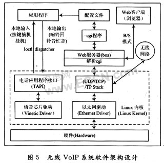 VoIP(Voice over IP)由于其在IP網(wǎng)絡中實現(xiàn)語音通信,促進了網(wǎng)絡資源的利用,降低了語音業(yè)務成本,在全球范圍內(nèi)得到了迅速的發(fā)展。802.11無線局域網(wǎng)(WLAN)將用戶從有線的網(wǎng)絡連接中解放出來。在企業(yè)中部署WLAN網(wǎng)絡之后建立VoIP的應用,并不需要對現(xiàn)有的網(wǎng)絡進行改造就能滿足在企業(yè)內(nèi)部進行語音通信的需求,并且滿足下一代移動通信應用在單一網(wǎng)絡內(nèi)進行數(shù)據(jù)、語音、多媒體的傳輸?shù)陌l(fā)展方向。本文將VoIP和WLAN(Wireless LAN)結合到一起,在MIPS(Microprocessor without Interlocked PipelineStages)架構的處理器ADM5120上實現(xiàn)了在無線局域網(wǎng)內(nèi)進行IP通話的功能。系統(tǒng)以終端的形式進行通信,可移動性強。