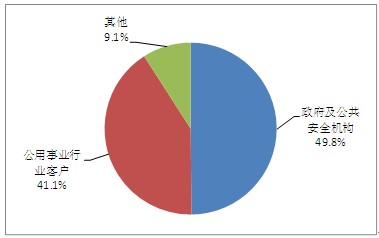 從細(xì)分市場(chǎng)來(lái)看,政府及公共安全機(jī)構(gòu)為最大的細(xì)分市場(chǎng),占總市場(chǎng)規(guī)模的49.8%,而且比重仍有上升趨勢(shì),公用事業(yè)行業(yè)客戶(hù)市場(chǎng)占比41.1%,其他客戶(hù)占9.1%。