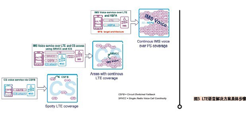 讓我們來看看主流運(yùn)營商在LTE時(shí)代有哪些語音解決方案可以挑選,以及它們的優(yōu)劣比較(見表1)。圖3為實(shí)現(xiàn)LTE語音解決方案的具體步驟。
