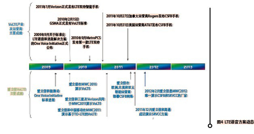 作為通信設(shè)備制造商領(lǐng)頭羊的愛立信正與整個(gè)行業(yè)一起積極推進(jìn)LTE語音解決方案全面測(cè)試和商業(yè)部署。從2009年倡議建立后來被GSMA定義為VoLTE對(duì)應(yīng)要求的“One Voice Initiative”到2010/2011年多次在各大通信展上演示VoLTE呼叫并幫助歐洲及北美運(yùn)營商成功部署CSFB解決方案,再到2012年在巴塞羅那通信展惟一現(xiàn)場(chǎng)演示CSFB、SRVCC解決方案(見圖4),對(duì)于LTE語音解決方案的穩(wěn)健發(fā)展,愛立信和整個(gè)通信產(chǎn)業(yè)鏈一樣充滿信心。