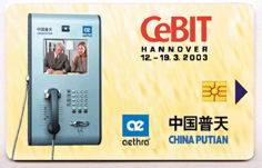 天津電話設(shè)備廠為參展2003年德國漢諾威展覽會(huì)精心制作的IC卡片