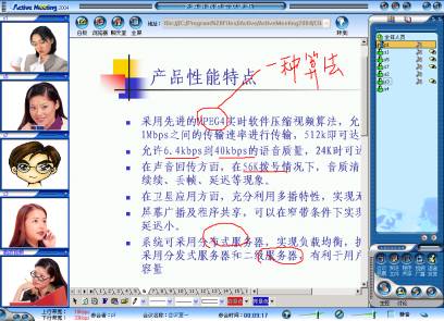 據(jù)該公司技術(shù)總監(jiān)李明先生介紹,Active Meeting2004是為了迎合寬帶運(yùn)營而專門設(shè)計(jì)開發(fā)的。首先,服務(wù)器引用"級聯(lián)"方式,通過系統(tǒng)服務(wù)器端Active Center的"平衡分流"設(shè)計(jì),使得任何單位的會議和交流能夠流暢的進(jìn)行。