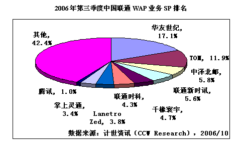 2006年第三季度中國移動WAP業(yè)務SP排名