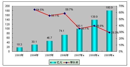 在《2006-2007年中國增值服務提供商發(fā)展趨勢及市場機會研究報告》中顯示,2006年,我國WAP業(yè)務發(fā)展勢頭迅猛,市場總量由2005年的46.7億元增長到74.1萬元,從用戶數(shù)情況來看,2006年年底,WAP業(yè)務用戶總數(shù)達到4798.4萬戶。2007年,WAP業(yè)務仍然會有長足的發(fā)展,絕對增長將有所提高,需要新的技術和業(yè)務內容,以創(chuàng)造新的增長,市場總量預計將超過100億元。