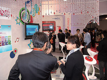 在通信展上,中國(guó)移動(dòng)在展場(chǎng)核心區(qū)展示了面向2008年奧運(yùn)會(huì)的奧運(yùn)無(wú)線(xiàn)業(yè)務(wù)和全曲下載“音樂(lè)隨身聽(tīng)”,中國(guó)聯(lián)通則重點(diǎn)展示了其最具特色的整首音樂(lè)下載業(yè)務(wù),吸引了大批觀眾。許多觀眾還在中國(guó)移動(dòng)和中國(guó)聯(lián)通無(wú)線(xiàn)音樂(lè)展臺(tái)前,現(xiàn)場(chǎng)聆聽(tīng)各種動(dòng)聽(tīng)的歌曲,體驗(yàn)無(wú)線(xiàn)音樂(lè)的魅力?梢哉f(shuō),手機(jī)音樂(lè)成為手機(jī)娛樂(lè)業(yè)務(wù)中最受人們關(guān)注的亮點(diǎn)。