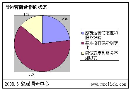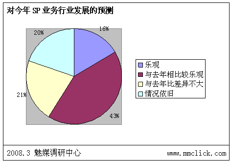 魅媒無線調(diào)研中心認(rèn)為:由于前期政府以及運營商對SP行業(yè)的相關(guān)整頓效果明顯,相關(guān)的制度、措施以及管理系統(tǒng)上線后,SP違規(guī)的風(fēng)險已經(jīng)越來越大,行業(yè)自律狀態(tài)較之前有明顯的改善。但是由于部分的制度明顯存在矯枉過正現(xiàn)象,不少的措施嚴(yán)重影響到用戶的體驗,而且對SP管理一直出于消極的狀態(tài),需要不斷調(diào)整。