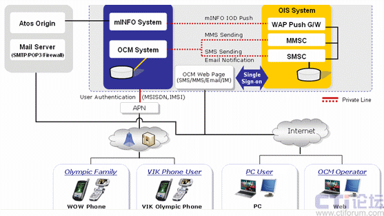 奧運社區(qū)傳送服務(wù),簡稱OCM,是用于競賽運營的移動通信服務(wù)機構(gòu),OCM的服務(wù)包括使用短信和彩信的信息群發(fā)以及使用即時信息和電子郵件的社區(qū)通信服務(wù)。屆時,三星北京2008WOW將根據(jù)用戶的喜好設(shè)置提供個性化的奧運信息,分為競賽、新聞、信息、火炬接力和“我的WOW”——每個WOW用戶可以根據(jù)自身的喜好定制特殊的信息服務(wù)。
