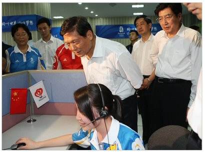 劉淇、郭金龍到北京奧運會觀眾呼叫中心視察