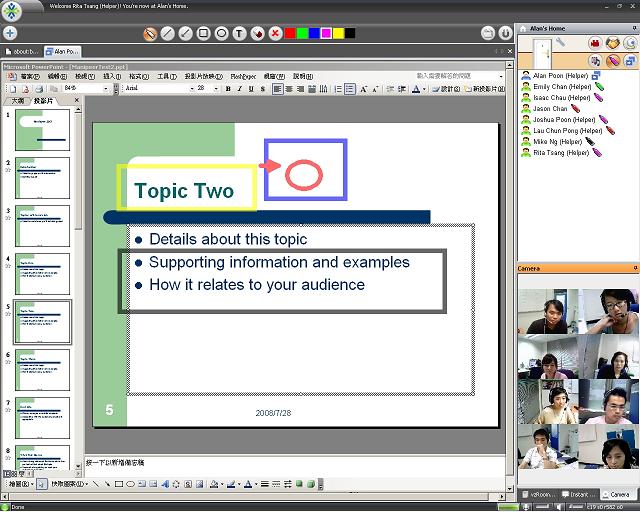 2.在多人會(huì)議的環(huán)境下,vzRoom同時(shí)支持多種實(shí)時(shí)信息分享,包括網(wǎng)頁(yè)、相片、文件、圖表和簡(jiǎn)報(bào)等,配合內(nèi)置畫筆功能,方便解說。
