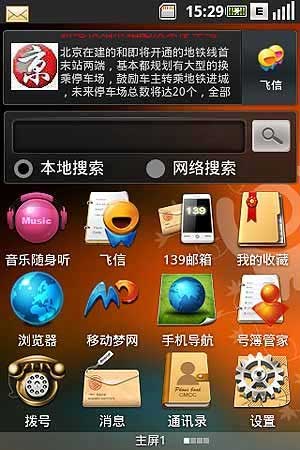 據(jù)介紹,在Ophone手機(jī)最終版主界面中嵌入了手機(jī)搜索欄,實(shí)現(xiàn)對(duì)手機(jī)內(nèi)容的一鍵搜索,同時(shí)它支持手機(jī)內(nèi)多種數(shù)據(jù)及互聯(lián)網(wǎng)的全面搜索。