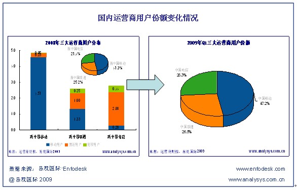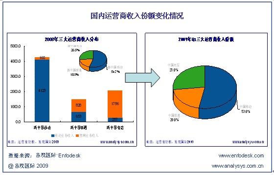 作為2008年度電信業(yè)內(nèi)最大的兩件大事,重組和3G牌照的發(fā)放不僅拉開(kāi)了全業(yè)務(wù)競(jìng)爭(zhēng)的序幕,而且為國(guó)內(nèi)電信市場(chǎng)的競(jìng)爭(zhēng)注入了新的活力,一方面提供了讓電信業(yè)競(jìng)爭(zhēng)逐漸趨于平衡的發(fā)展契機(jī),從另一方面也同時(shí)帶來(lái)了大量的消費(fèi)需求。