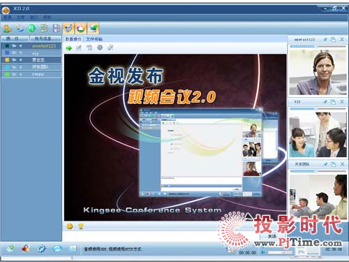 金視視頻會議系統(tǒng)(Kingsee Conference)是一款視頻會議+即時通訊(IM)的軟件,提供給用戶的是一個全面的、通用的多媒體通訊平臺,用戶可以利用普通的PC機、標準的視頻采集設(shè)備、耳機和麥克風(fēng),實現(xiàn)基于Internet的虛擬會議,金視視頻會議(Kingsee