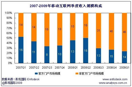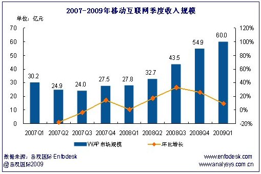 2009首季中國移動互聯(lián)網(wǎng)收入達60億 運營商官方門戶有望快速增長