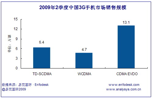 2009年第2季度中國3G手機(jī)市場整體銷量達(dá)到24.2萬