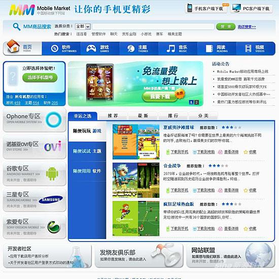 中國(guó)移動(dòng)手機(jī)應(yīng)用程序商店首頁(yè)截圖