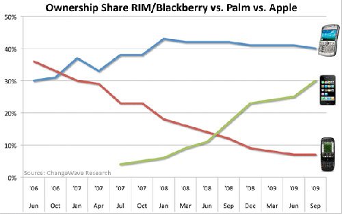圖:市場研究公司ChangeWave Research對智能手機市占最新分析數(shù)據(jù)