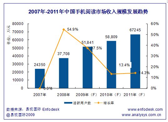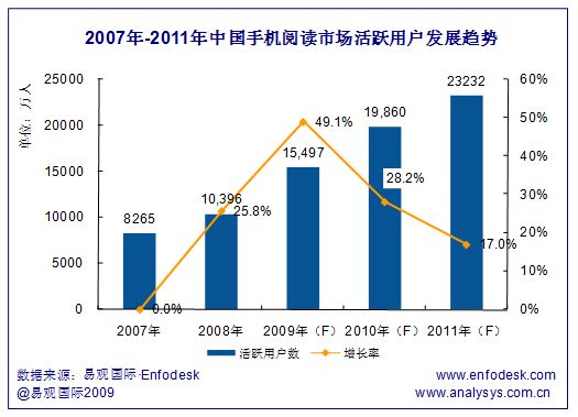 易觀預測:2010年中國手機閱讀活躍用戶數(shù)將達2億
