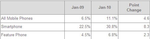 市場調(diào)研機構(gòu)comScore最新公布的一項數(shù)據(jù)顯示,越來越多的用戶開始用手機來訪問社交網(wǎng)絡(luò),特別是智能手機用戶。在2010年一月,有30.8%的智能手機用戶用手機訪問了社交網(wǎng)絡(luò)。