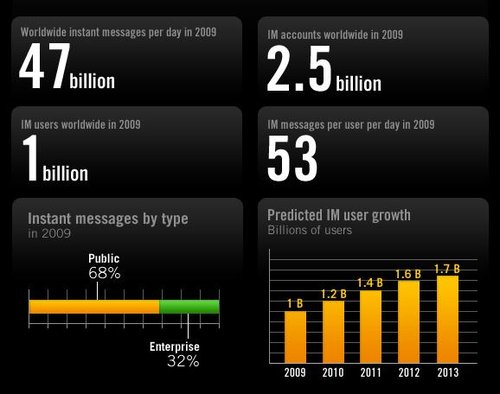 4月28日,Royal Pingdom (royal.pingdom.com)近日總結了全球主要即時通訊工具的相關數據,并繪制了一張圖表。