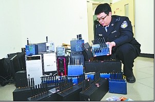 3月23日凌晨5時許,警方兵分五路,一舉搗毀位于西城、石景山、通州等地的5個群發(fā)窩點,抓獲四川籍向某、河南籍徐某等8名嫌疑人,同時繳獲了涉案手機(jī)短信群發(fā)器62臺、臺式電腦15臺、筆記本電腦2臺、用于短信群發(fā)的電話卡4000余張。