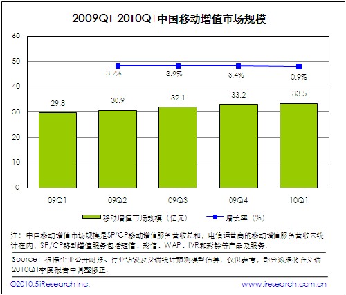 電信運營商計費政策重大調(diào)整對整個移動增值市場產(chǎn)生巨大影響力,2010Q1移動增值市場規(guī)模為33.5億,與09Q1基本持平。電信運營商實施計費通道的強力治理措施,對產(chǎn)品線以WAP計費為主的企業(yè)造成嚴重生存壓力,與此同時采用短信計費的移動增值產(chǎn)品營銷也受到不同程度影響。實現(xiàn)由單一移動增值業(yè)務(wù)向移動互聯(lián)網(wǎng)服務(wù)進行戰(zhàn)略轉(zhuǎn)型,是SP企業(yè)戰(zhàn)略發(fā)展的實踐路徑。艾瑞認為電信運營商實施全新的合作伙伴計費政策,將重新構(gòu)建移動增值市場秩序。