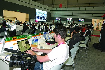 世博的主新聞中心一開門便受到媒體的“熱捧”。中國電信的后臺(tái)信息系統(tǒng)顯示,世博主新聞中心的數(shù)據(jù)量一直居高不下,因?yàn)橛浾哒χ米烂嫔系?00M有線寬帶高速上網(wǎng)、收發(fā)稿件、傳送采訪的視頻。在世博主新聞中心一樓記者工作大廳,想在300個(gè)坐席里找個(gè)空位可不是容易的事情。