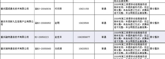 經(jīng)四川省工商行政管理局官方網(wǎng)站查詢發(fā)現(xiàn),成都融特通信技術(shù)有限公司注冊人資本為100萬,法人為趙世洋。注冊信息顯示,成都融特通信技術(shù)有限公司及其關(guān)聯(lián)公司——重慶融特通信技術(shù)有限公司,其主營業(yè)務(wù)為通信產(chǎn)品的技術(shù)開發(fā)。而搜狐IT獲得的一份資料表明,成都融特通信技術(shù)有限公司目前仍然是中國聯(lián)通廣東、重慶、四川等省市的增值業(yè)務(wù)提供商,并于2009年第三季度因違規(guī),被中國聯(lián)通處罰,要求其進行整改。