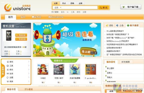 目前聯(lián)通應(yīng)用商店共有1125款應(yīng)用,其中包含445款游戲、208款閱讀、294款主題、生活軟件113款、工具軟件49款,娛樂應(yīng)用16款。目前仍處于測試階段,還沒有應(yīng)用開發(fā)商進行大規(guī)模的程序提交。