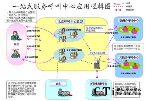 - 依托完善的呼叫中心技術平臺,好醫(yī)生在國內(nèi)唯一的國家級醫(yī)藥產(chǎn)業(yè)基地——泰州“中國醫(yī)藥城”構(gòu)建完成了國內(nèi)首家具有100座席以上處理能力的醫(yī)藥衛(wèi)生領域的專業(yè)化呼叫中心。該呼叫中心企業(yè)具有多址分布、全國組網(wǎng)功能。座席組物理上既可以在北京(好醫(yī)生的呼叫中心總部),也可以在北京以外的任何地區(qū)(好醫(yī)生的呼叫中心分部);通過IP技術,呼叫中心的各路話務統(tǒng)一由北京接入或呼出。