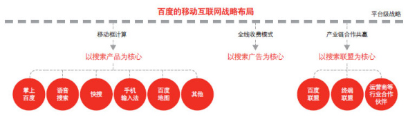 百度無線的戰(zhàn)略仍將以搜索作為核心。“百度在無線方面的核心發(fā)展規(guī)劃就三條:第一條,以搜索產(chǎn)品為核心布局移動(dòng)框計(jì)算。第二條,以搜索廣告位核心,探索全線收費(fèi)模式。第三條,以搜索聯(lián)盟為核心,推動(dòng)產(chǎn)業(yè)鏈合作共贏!边@是百度的官方說法。