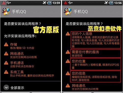 應(yīng)用安裝前的功能調(diào)用提示會(huì)讓吸費(fèi)應(yīng)用露出馬腳,但大部分用戶(hù)沒(méi)仔細(xì)看這個(gè)提示。