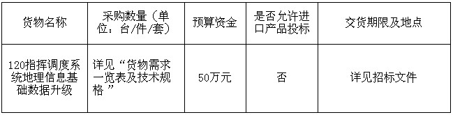 120指揮調(diào)度系統(tǒng)地理信息基礎(chǔ)數(shù)據(jù)升級采購項目招標(biāo)公告