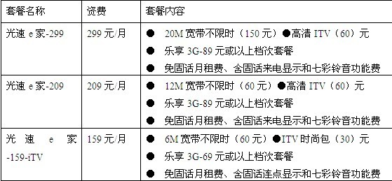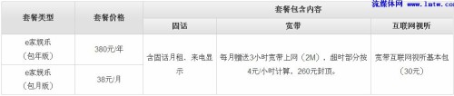 二、“我的e家”娛樂(lè)版套餐: