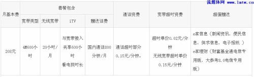 尊享e8套餐適用于對(duì)家庭上網(wǎng)時(shí)長(zhǎng)及速度要求很高,固話使用量較大,有iTV需求的家庭客戶,分為168/月和208元/月兩檔。
