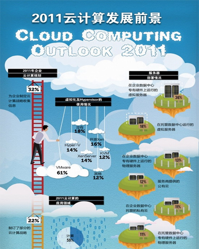 《2011云計算發(fā)展前景調查報告》的目標在于收集企業(yè)用戶中使用虛擬化和云計算技術的信息,有助于公眾了解云計算技術及其服務的演進。這份調查報告的結果來自2011年第二季度對BitNami、Cloud.com和Zenoss開源與系統(tǒng)管理社區(qū)中500多位用戶的調查。其目的是想看清楚云計算技術的使用趨勢,并對部署虛擬基礎設施提供參考。