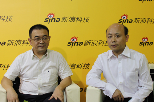 中國電信浙江公司副總經(jīng)理浦德松(左)與新浪科技主持人康釗(右)