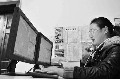圖:東陽(yáng)出租車呼叫中心調(diào)度員韓欣在接聽(tīng)電話,調(diào)度車輛